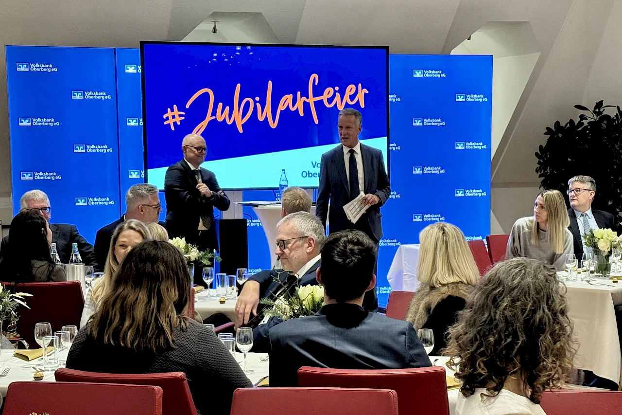 Ein besonders stiller Moment war der Rückblick auf das außergewöhnliche Jubiläum von Christoph Bender. Er erreichte am 1. September 2025 sein 50-jähriges Dienstjubiläum und verstarb zwei Monate später. In stillem Gedenken erinnerte die Volksbank Oberberg an sein jahrzehntelanges Engagement und seine Verbundenheit mit der Bank.