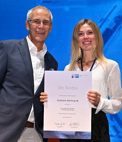 Wenn im Kölner Musical Dome die besten Auszubildenden des Jahres ausgezeichnet werden, ist die Volksbank Oberberg längst Stammgast unter den Geehrten. Gleich drei junge Bankkaufleute aus den eigenen Reihen – Liana Küpper, Niklas Witthaut und Michael Janzen – gehörten in diesem Jahr zu den 363 Top-Azubis im Bezirk der IHK Köln.