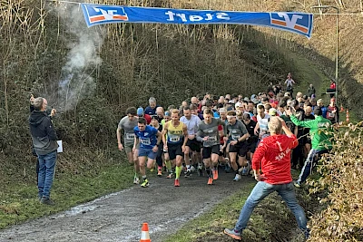 Über die fünf Kilometer fehlten Maciek Miereczko von der LG Donatus Erftstadt am Ende lediglich neun Sekunden auf die bestehende Bestmarke. Nach einem Sturz auf der rutschigen Strecke kämpfte sich der 46-Jährige trotz aufgeschlagenem Knie ins Ziel und gewann dennoch mit deutlichem Vorsprung. Auch wenn der offizielle Rekord damit knapp verpasst wurde, gab es ein kleines Trostpflaster: Jörn Richling überreichte dem Sieger den Prämien-Scheck als Anerkennung für die außergewöhnliche Leistung unter erschwerten Bedingungen.